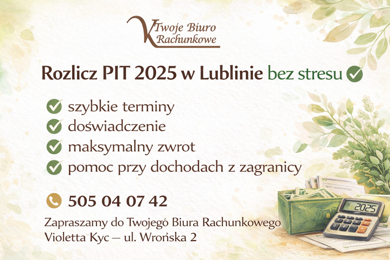 Biuro Rachunkowe Lublin, zapraszamy serdecznie do kontaktu z nami, do skorzystania z naszych usług, rozliczenie PIT 2025.